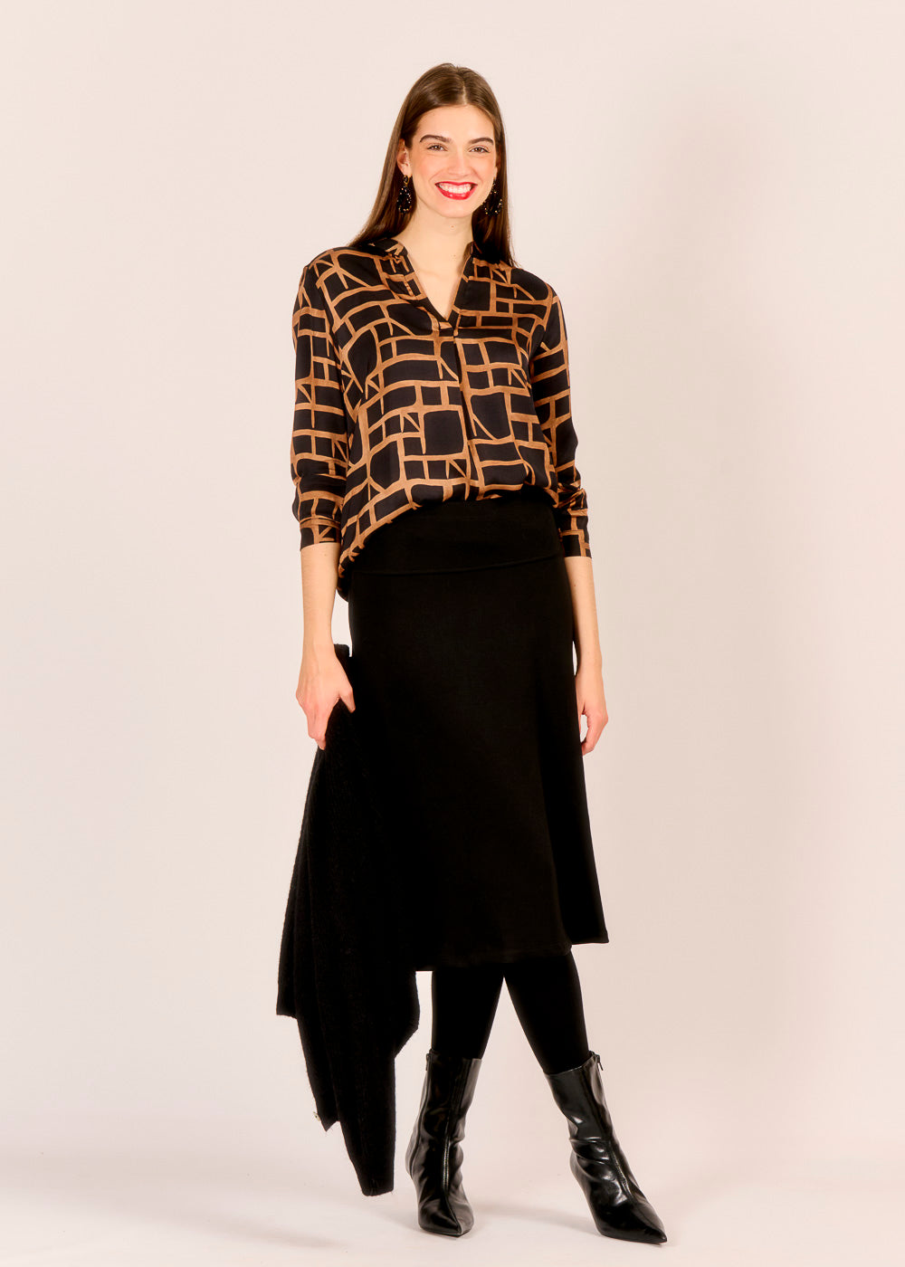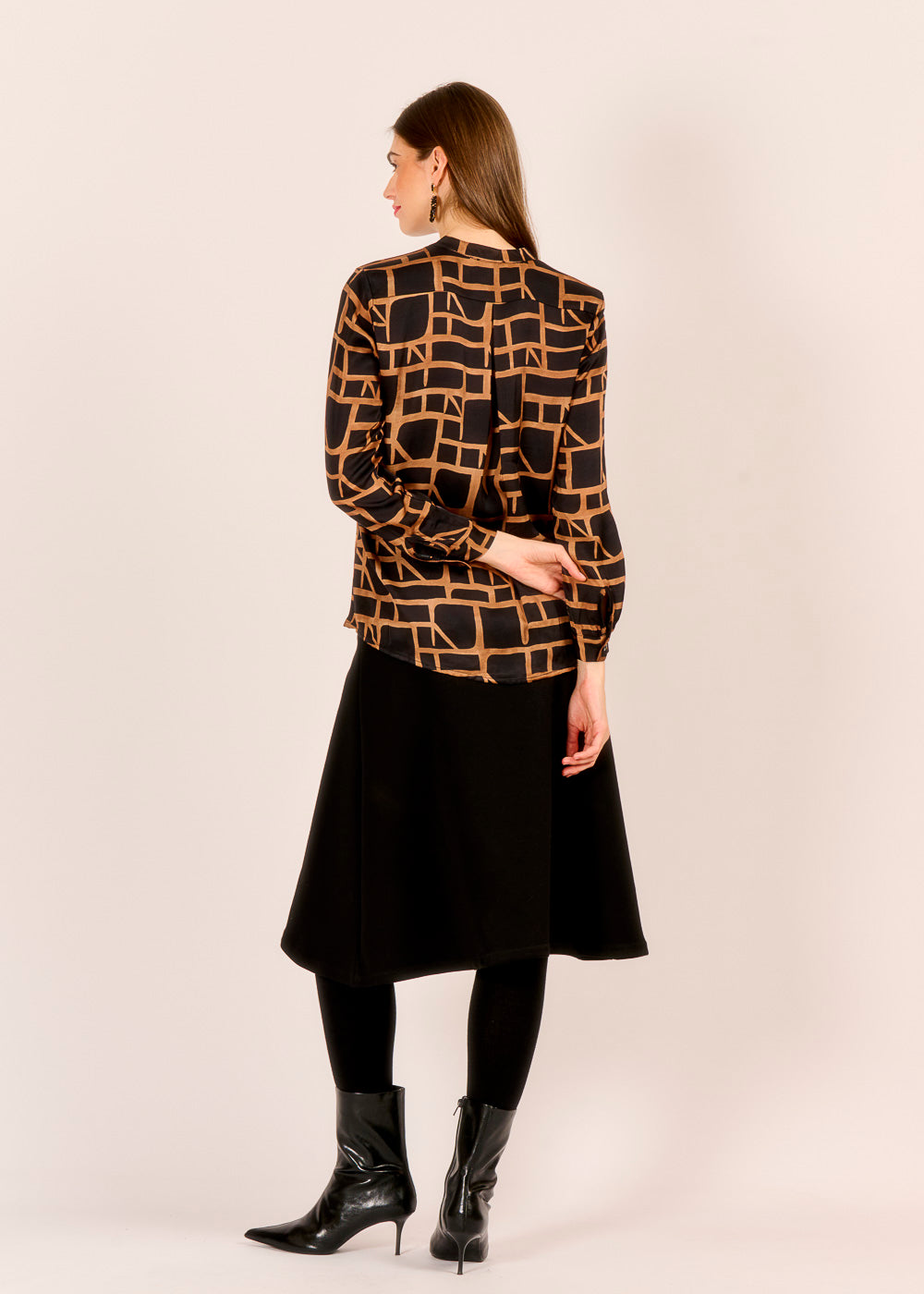 Diese edle Satin-Tunika wird dank fließendem Schnitt und modernem Muster zum absoluten Hingucker für die Festtage. Die Bluse verleiht aber auch jedem Alltagslook eine stilvoll feminine Note.