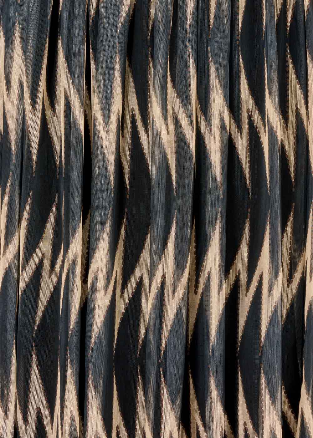 Ein Hauch von Festlichkeit, der die Blicke fesselt: Dieser zauberhafte Tüllrock in dunklen Tönen präsentiert sich mit einem dezenten, grafischen Muster. Die feinen Plissees und das leichte Tüllmaterial verleihen jedem Schritt eine schwingende Eleganz, ideal für glanzvolle Anlässe. Er ist die perfekte Wahl für die Feiertage und bringt einen Hauch von Magie in Ihre Garderobe.