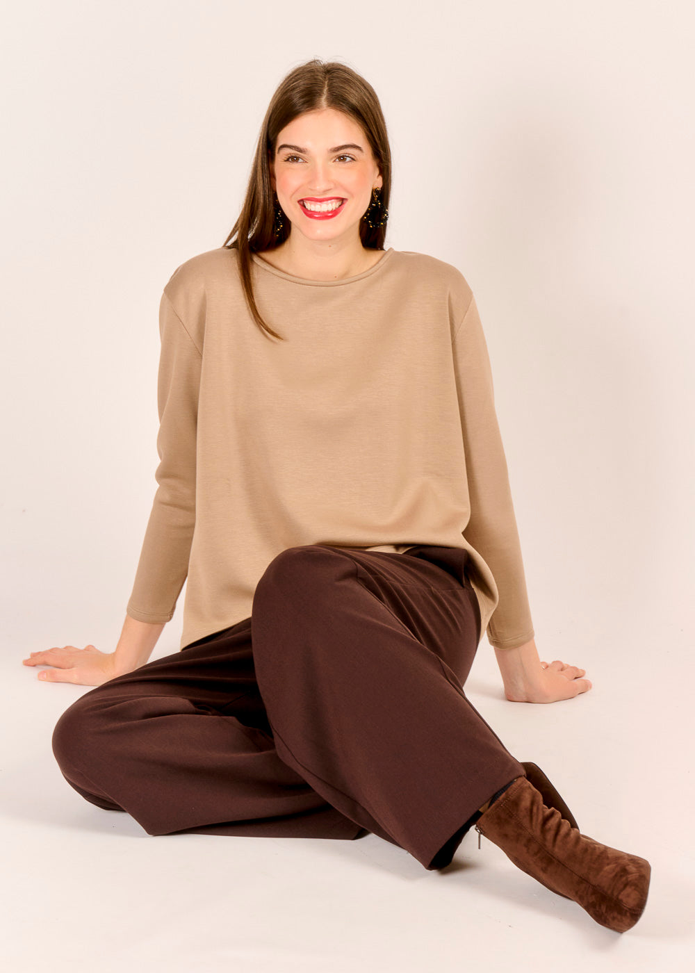 Dieses edle Shirt überzeugt mit raffiniertem Rücken und bietet eine sportliche, moderne Alternative zur klassischen Bluse. Besonders stilvoll lässt es sich mit einer edlen Pantalone für die Feiertage kombinieren – für ein bequemes Outfit, das Komfort und Eleganz mühelos vereint.