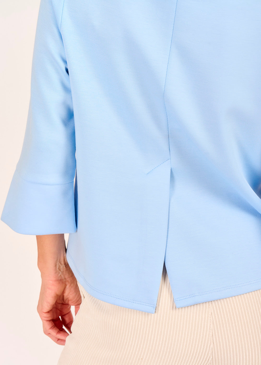 Dieses hellblaue Kastenshirt mit Viskose beeindruckt durch seinen modernen Schnitt und überrascht mit einem Schlitz im Rücken. Die strahlende Farbe verleiht jedem Outfit ein Gefühl von Frische und Leichtigkeit.